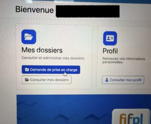 Sur la page d’accueil, cliquer sur le bouton « Demande de prise en charge » :